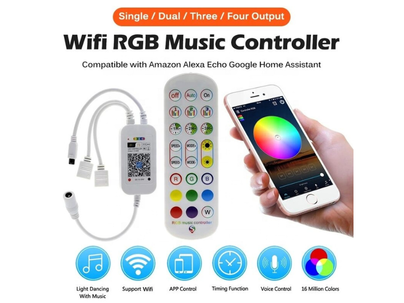 منظم سمارت واي فاي مع ريموت 24 مفتاح IR لشريط 4 خطوط RGB