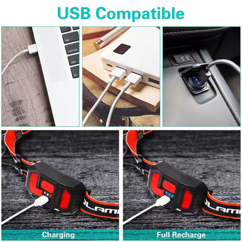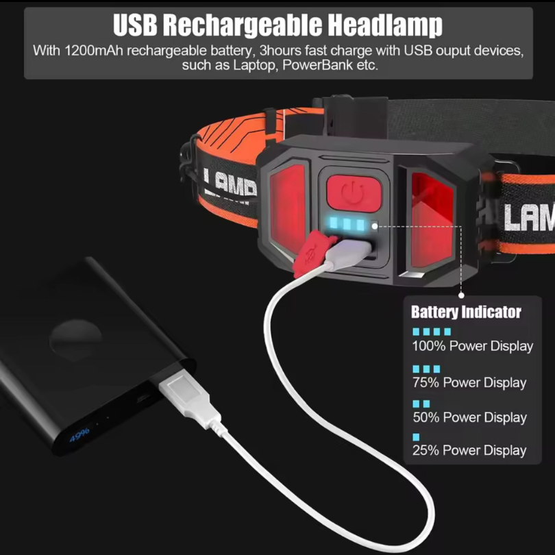 كشاف إنارة يلبس بالرأس - قشاط قابل للتعديل حسب حجم الرأس - إضاءة 3 حركات من الجهة الأمامية ( إنارة قوية - إنارة وسط - إنارة فلشر ) - إضاءة لون تحذيرية من الخلف لون أحمر 2 حركتين ( إضاءة ثابتة - إضاءة فلشر ) - مرفق كيبل USB للشحن - يعمل لمدة 3 - 4 ساعات بالشحنة .