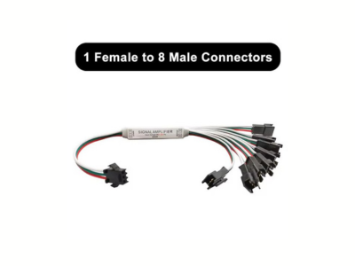 قطعة جدا مهمة تستخدم لتوزيع الإشارة والكهرباء لشريط الليد ال IC بأنواعة للإنارة المتحركة او المتدفقة - فقط اشبك قطعة التوزيع على المنظم لتعطيك اكثر من مخرج لشريط الليد في حال كان عندك اكثر من خط للإنارة - متوفر منها 4 مخارج و 8 مخارج - تستخدم لكهرباء ال 5 - 24 فولت .