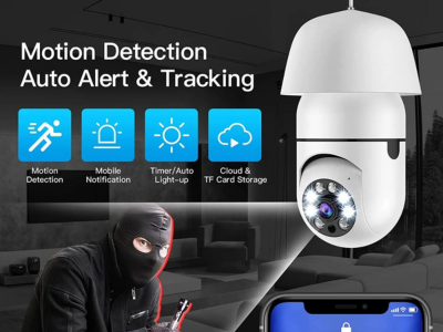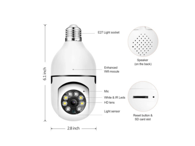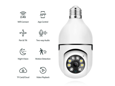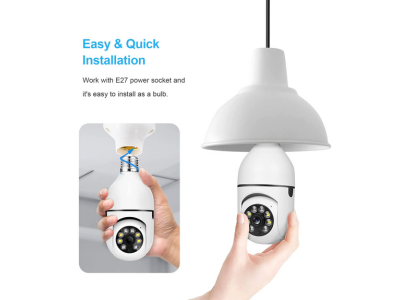كاميرا واي فاي بدقة تصل لـــ 5 ميجا بكسل - حمل تطبيق iCSee وتحكم بالكاميرا - دوران 360 درجة PTZ - امكانية التحدث والاستماع من خلال الكاميرا - رؤية ليلية واضحة - امكانية تتبع الحركة - خاصية اشعارات عالهاتف عند شعور الكاميرا بالحركة - مدخل للذاكرة SD لحفظ التسجيلات - لا تحتاج لأي تمديد مرفق قاعدة سوكة سن 27 خطين كهرباء 220 فولت بارد وحامي لتركيب الكاميرا - تحتاج ان تكون متصلة بالأنترنت 2.4 لتتكمن من التحكم بالكاميرا ومشاهدة التصوير .